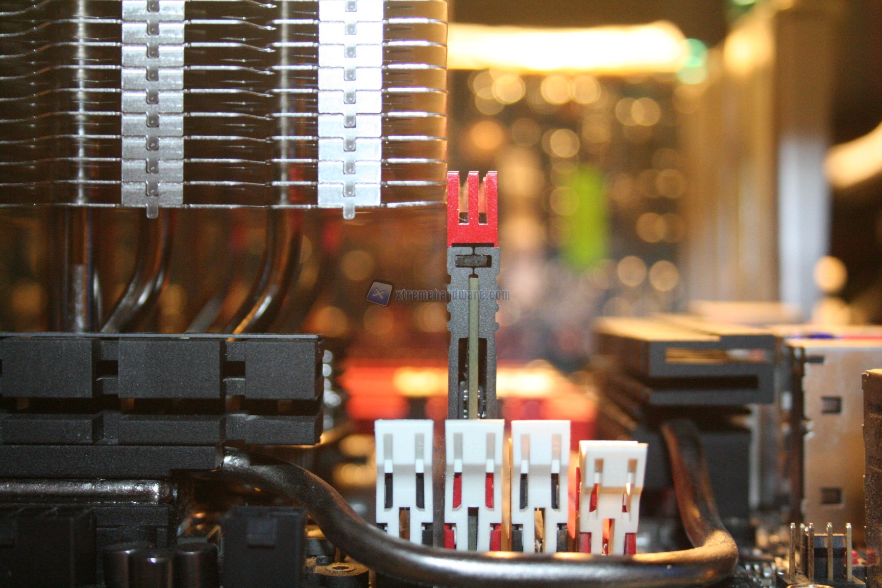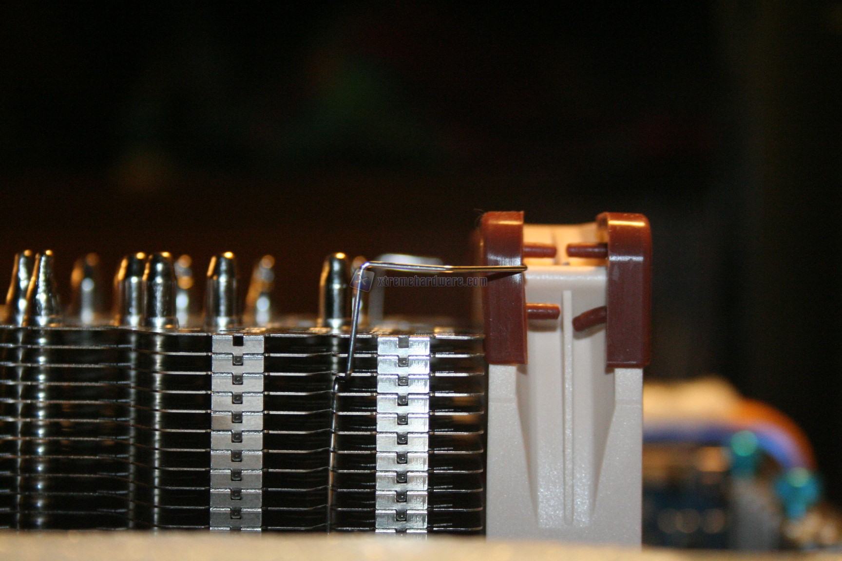 Nel caso del socket 1366 invece sarà necessario installare prima il sistema di aggancio del backplate e poi apporre quest’ultimo nella parte posteriore della scheda madre, facendo attenzione a far combaciare i pioli verticali posteriormente, negli incavi. Fatto questo, si devono installare i quattro distanziatori neri sui pioli precedentemente menzionati, poi apporre le due placche di ritenzione, fissarle con i quattro dadi, stendere un sottile velo di pasta termoconduttiva (consigliamo di farlo all’inizio, per agevolare la procedura), ed infine montare il dissipatore e serrare le viti. Fatto questo, abbiamo quasi completato l’opera, mancherà infatti l’installazione della ventola anteriormente e la connessione del suo connettore di alimentazione.