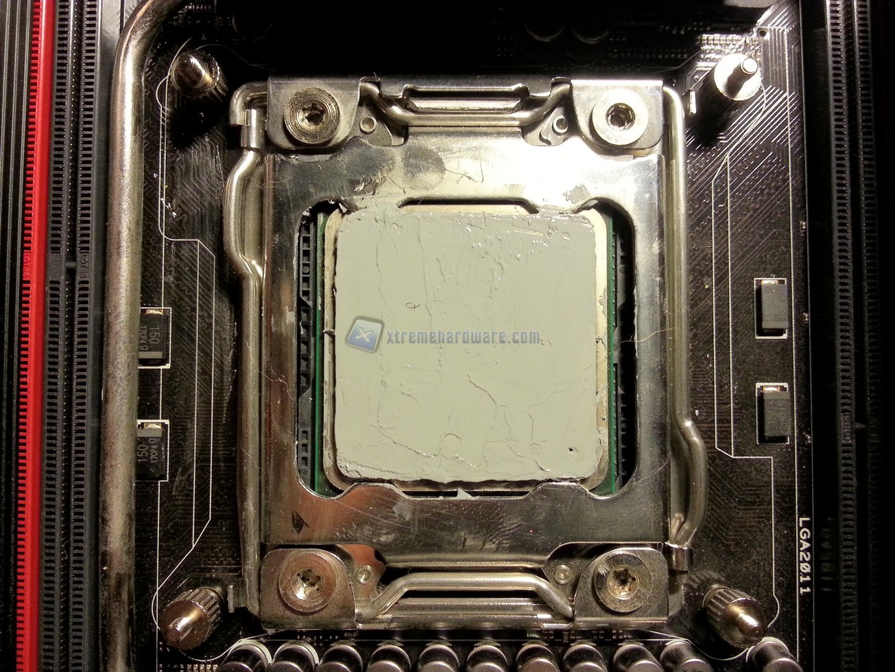 La procedura d’installazione, per entrambi i socket è davvero immediata ed è esente da problemi di progettazione. Analizzeremo brevemente la procedura per il socket LGA 2011: è necessario avvitare le quattro sul sistema di ritenzione Intel, per poi apporre il plate Thermalright e fissarlo con le quattro viti con filettatura M2. Fatto questo, sarà necessario stendere un sottile velo di pasta termica. A questo punto è consigliabile controllare l’impronta termica.