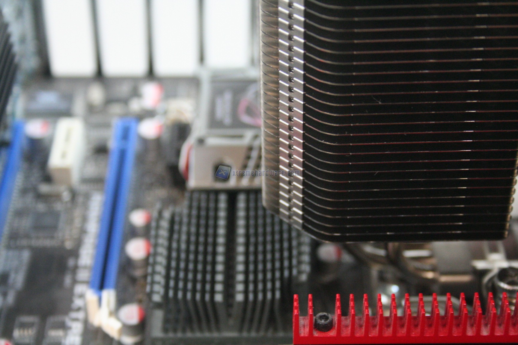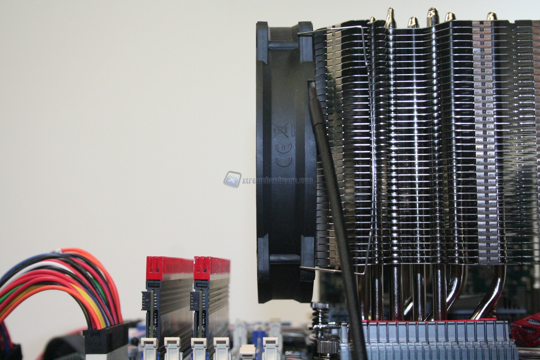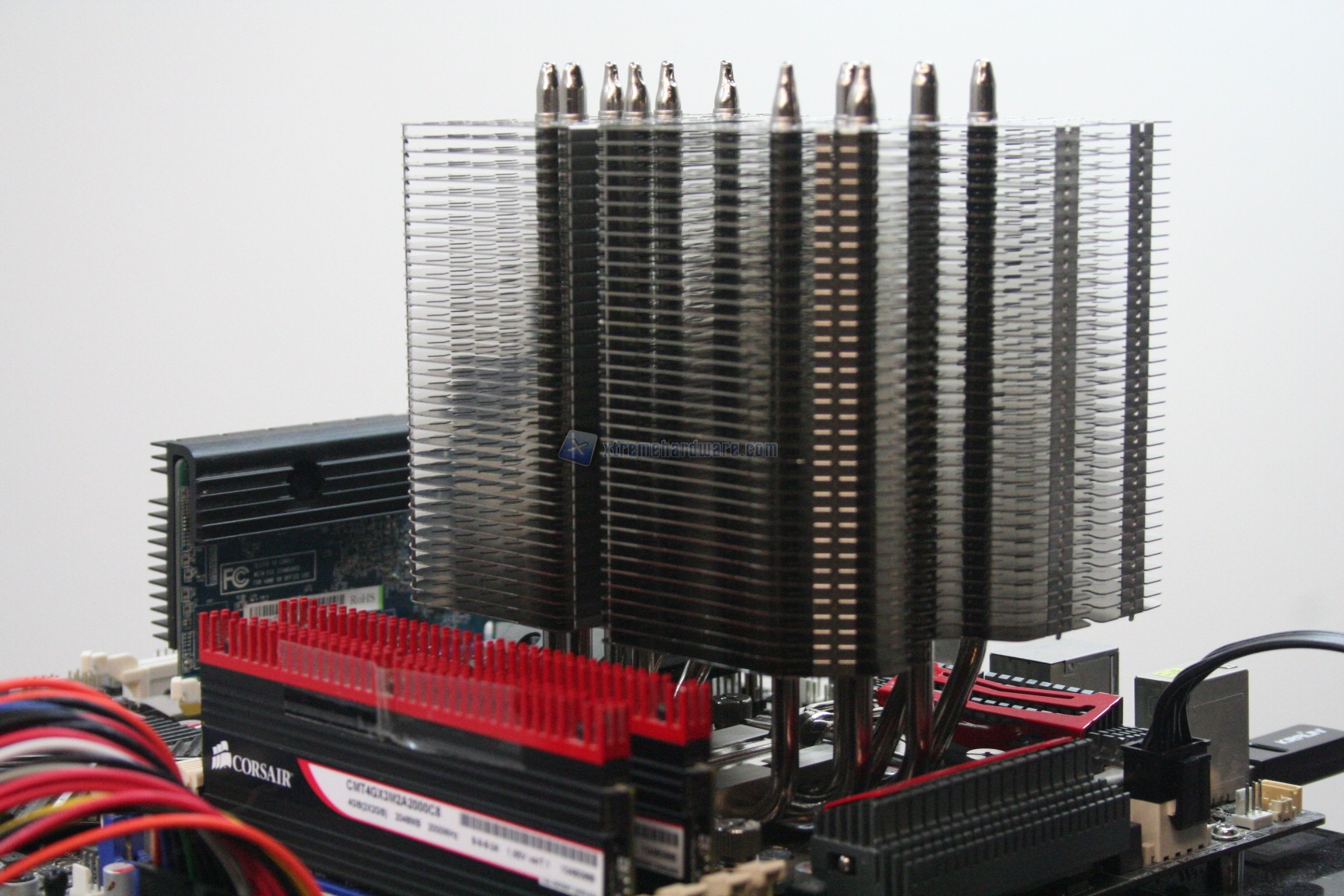 Il dissipatore presenta un’altezza della ventola non molto elevata rispetto alla scheda madre, quindi potrebbe esserci qualche incertezza nella compatibilità con schede madri aventi sistemi di dissipazione particolarmente grandi, anche se a conti fatti tenderemmo ad escluderlo: ad esempio prima di acquistare modelli simili alla ASUS  P8Z77I-DLX, vi consigliamo di prendere accurate misurazioni delle tolleranze laterali. L’altezza e la larghezza sono invece molto elevate e questo può creare qualche problema: con la ventola installata, in altezza raggiunge ben 175mm, un valore decisamente estremo per molti cabinet di fascia bassa e media.